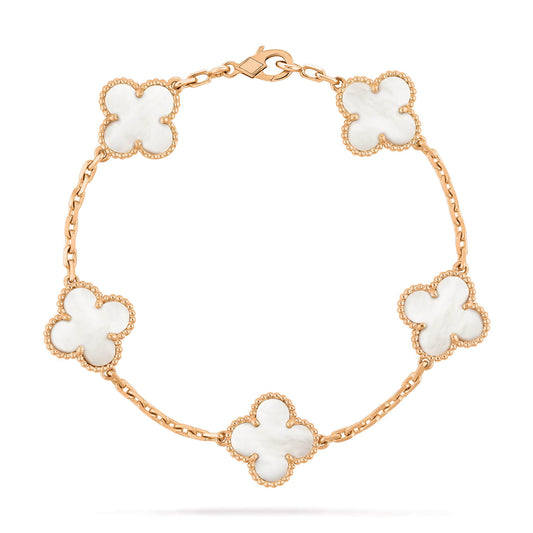 [Raffine]CLOVER 5 MOTIF WHITE MOP BRACELET