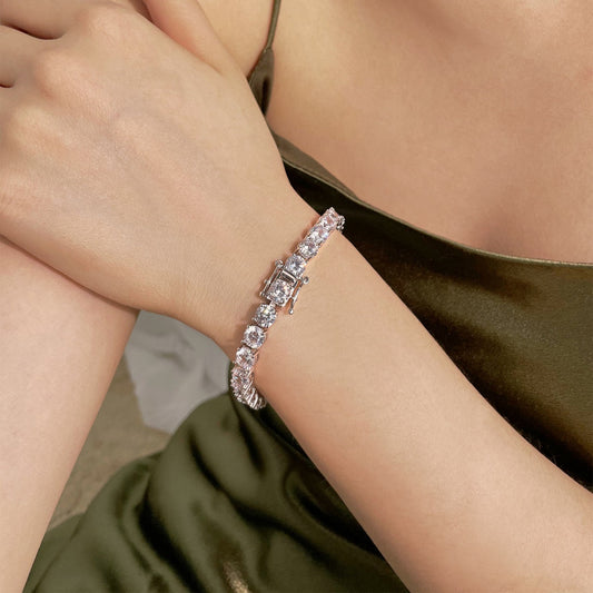 [Raffine] Lujosa pulsera de tenis con corte redondo ornamentado