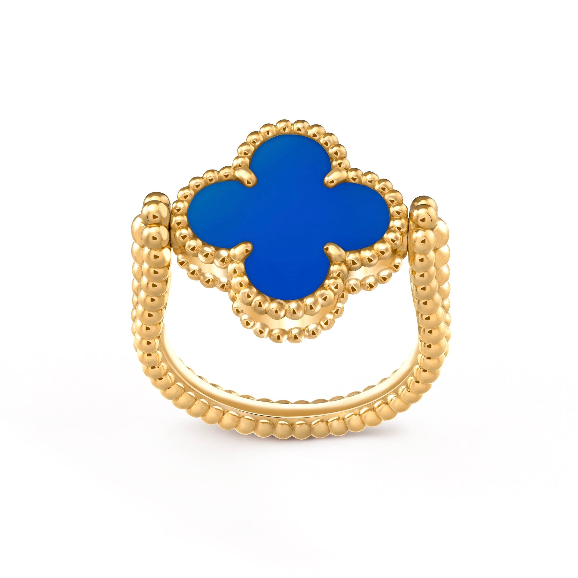 [Raffine]Anillo de ágata azul ribereña de trébol